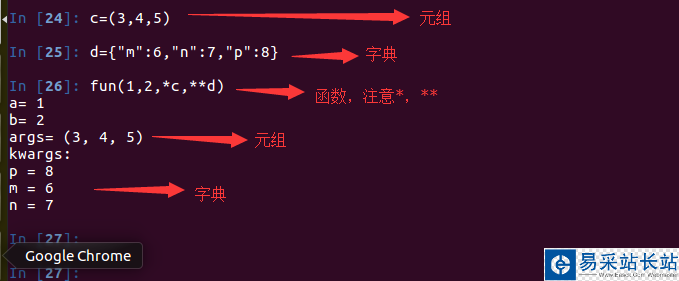 而加**的變量kwargs 會存放命名參數(shù),即形如key=value的參數(shù),kwargs為字典