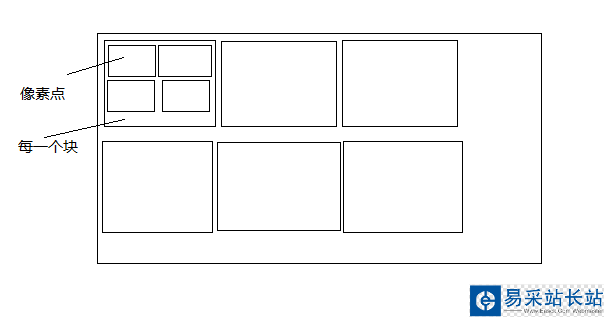 把一張圖片分成多個塊,每個塊的顏色都等于這個色塊中顏色最多的顏色,如下圖。