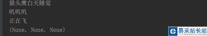 class MaoTouYing(Bird): def sleeping(self): print('貓頭鷹白天睡覺maotouying =MaoTouYing()print(maotouying.sleeping(),maotouying.speaking(),maotouying.flying())輸出結(jié)果: