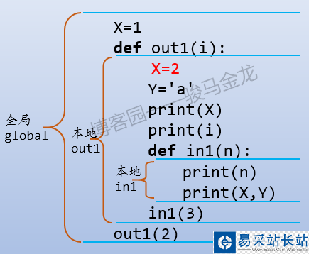 處于out1本地作用域范圍的變量有:i、X、Y、in1