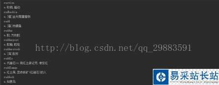 我們隨意拿出這句'runlet/n', 'n./xcd/xb0,/xd0/xa1/xba/xd3/n', '/n', 'runnel/n', 'n./xd0/xa1/xba/xd3,/xcf/xb8/xc1/xf7/n', '/n',從中可以看出,對于每行的文件,在讀取的時候,換行符“/n”也是會被讀取在單詞和對應的解釋的后面的,所以這也就是為什么會有那么多空行的原因了,這顯然不是我們想要看見的,下面我們處理一下,讓這些多余的空行失去效果: