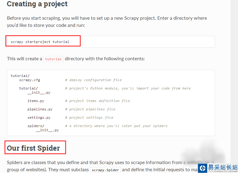 8、最后一步,使用 scrapy startproject tutorial 命令生成scrapy爬蟲模版,然后就可以根據文檔對scrapy爬蟲模版進行改寫來完成我們自己的網絡爬蟲了,大功告成!!!