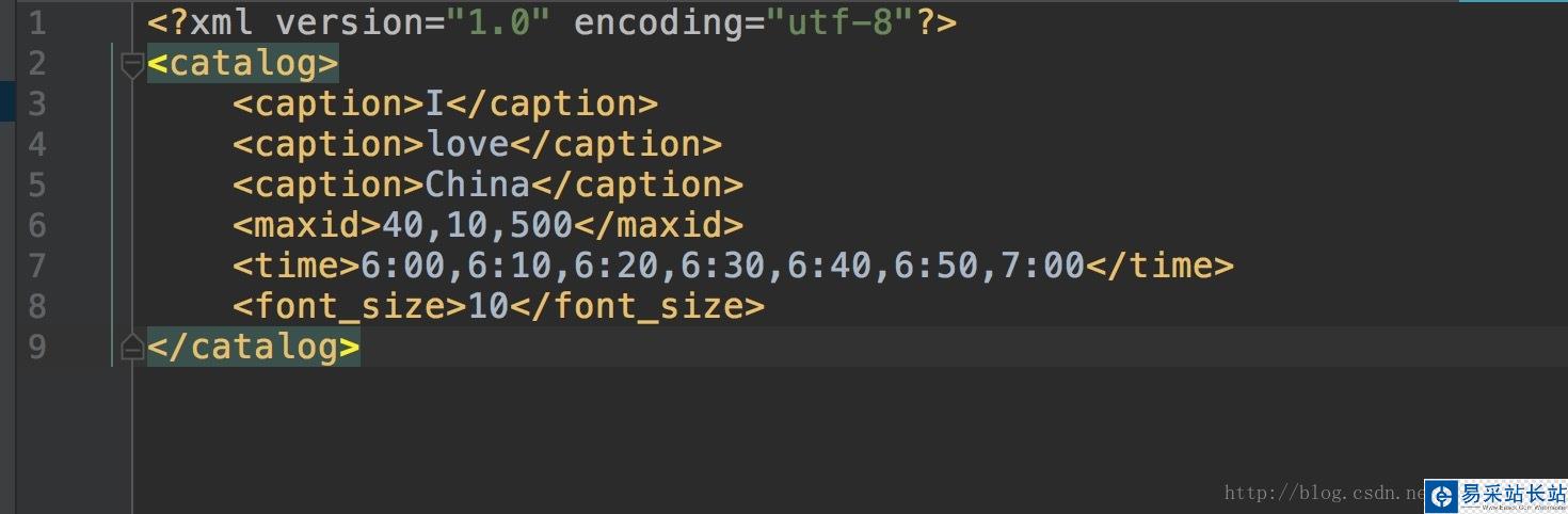 XML文件的名稱為abc.xml, 內容如下圖所示: