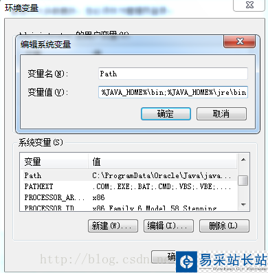 找到Path變量,在變量值的末尾增加兩個路徑:%JAVA_HOME%/bin;%JAVA_HOME%/jre/bin