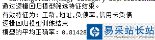 import pandas as pdfilename=r'../data/bankloan.xls'data=pd.read_excel(filename)x=data.iloc[:,:8].as_matrix()y=data.iloc[:,8].as_matrix()from sklearn.linear_model import LogisticRegression as LRfrom sklearn.linear_model import RandomizedLogisticRegression as RLRrlr=RLR()rlr.fit(x,y)rlr.get_support()print(u'通過邏輯回歸模型篩選特征結束。')data2=data.drop(u'違約',1)print(u'有效特征為:%s'%','.join(data2.columns[rlr.get_support()]))x=data[data2.columns[rlr.get_support()]].as_matrix()lr=LR()lr.fit(x,y)print(u'邏輯回歸模型訓練結束')print(u'模型的平均正確率:%s'%lr.score(x,y))