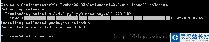 使用pip安裝selenium,在cmd中運(yùn)行pip install selenium,安裝完成后會(huì)出現(xiàn)如下提示,selenium就安裝成功了