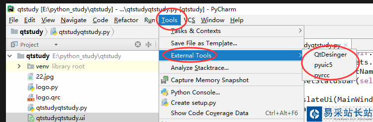 10、右鍵保存好的ui文件,選擇external tools->pyuic5生成代碼,天意弄人啊,沒想到報錯了我去,有些是不報錯的。。。居然找不到模塊,可以明明存在呀