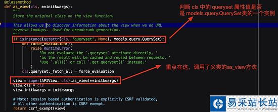 APIView 類的父類是 View 類,查看該類的 as_view 方法,源碼如下: