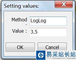 title='Setting values:'values={'Method':'LogLog','Value':3.5}rvalues=InputBox(title,values)生成的界面如下: