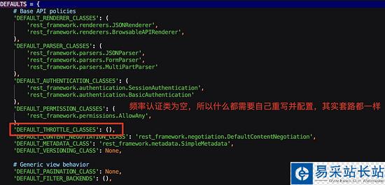 經(jīng)過權(quán)限判斷之后就是進(jìn)行頻率的判斷了,而頻率的判斷和權(quán)限又不一樣,認(rèn)證、權(quán)限和頻率的執(zhí)行流程都差不多,使用配置里面的相關(guān)類來進(jìn)行判斷。而不和認(rèn)證和權(quán)限一樣,頻率的配置沒有,查看 APIView 的類屬性如下: