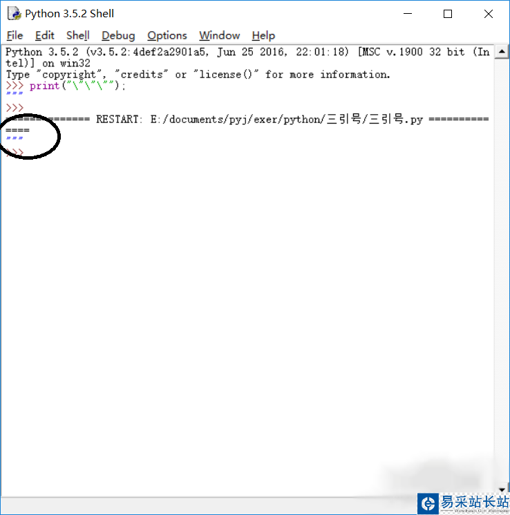 print("/"/"/"");因?yàn)?"代表一個(gè)引號(hào),那么連續(xù)三個(gè)/"自然就是三引號(hào)了。