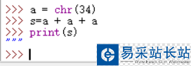 >>> a = chr(34)>>> s=a + a + a>>> print(s)"""