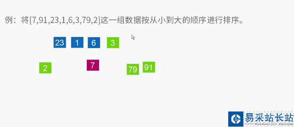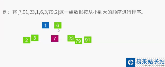 4、下面以[ 7 91 23 1 6 3 79 2 ]數組為例子,進行快排運算。