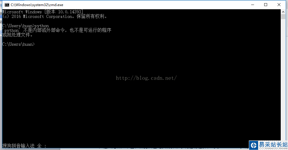 5、為了檢查我們的python是否安裝成功,可以在命令窗口中輸入python進行查詢,如顯示下圖一的信息則表示成功了,如顯示第二張圖的信息則表示出錯了。