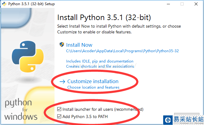 3、雙擊exe文件進行安裝,如下圖,并按照圈中區域進行設置,切記要勾選打鉤的框,然后再點擊Customize installation進入到下一步: