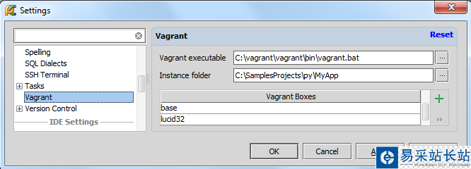 在設置對話框中(單擊主工具欄的設置按鈕),單擊 Vagrant界面,然后輸入可執行文件路徑以及實例路徑。