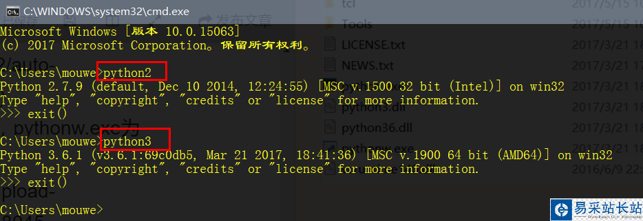 此時,我們打開系統的命令行窗口,輸入命令python2進入python2開發環境,輸入命名python3進入python3開發環境