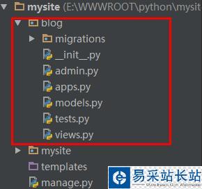 E:/WWWROOT/python/mysite>python manage.py startapp blog