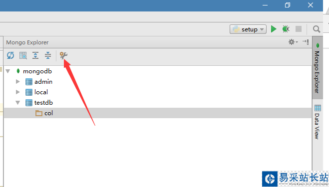 首先在你的頁面上面找一個Mongo Exploer的按鈕(一般在左側或者右側)。點擊打開面板,點擊這個設置按鈕。