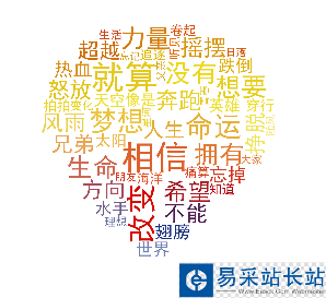 #encoding=gbkimport jieba.analysefrom PIL import Image,ImageSequenceimport numpy as npimport matplotlib.pyplot as pltfrom wordcloud import WordCloud,ImageColorGeneratorlyric= ''f=open('./勵(lì)志歌曲歌詞.txt','r')for i in f:  lyric+=f.read()result=jieba.analyse.textrank(lyric,topK=50,withWeight=True)keywords = dict()for i in result:  keywords[i[0]]=i[1]print(keywords)image= Image.open('./tim.jpg')graph = np.array(image)wc = WordCloud(font_path='./fonts/simhei.ttf',background_color='White',max_words=50,mask=graph)wc.generate_from_frequencies(keywords)image_color = ImageColorGenerator(graph)plt.imshow(wc)plt.imshow(wc.recolor(color_func=image_color))plt.axis("off")plt.show()wc.to_file('dream.png')以上這篇python生成詞云的實(shí)現(xiàn)方法(推薦)就是小編分享給大家的全部內(nèi)容了,希望能給大家一個(gè)參考,也希望大家多多支持武林站長站。