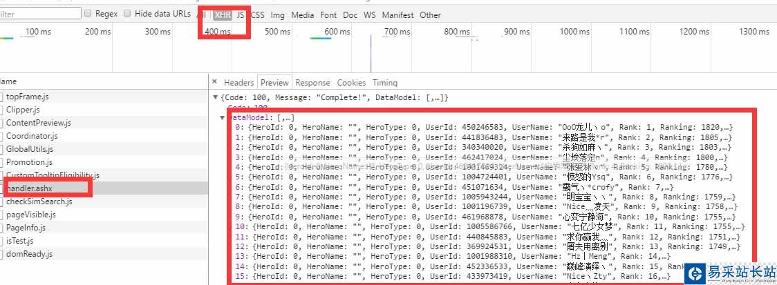 在 XHR一欄里,我們找到所請求的數(shù)據(jù)