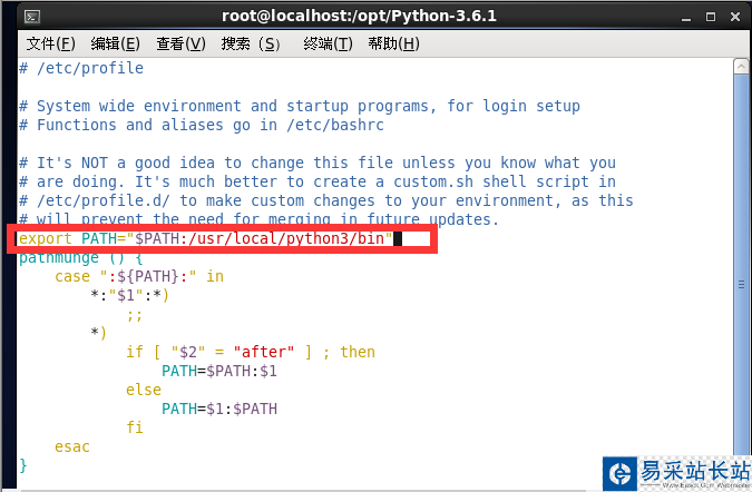 添加export PATH="$PATH:/usr/local/python3/bin"