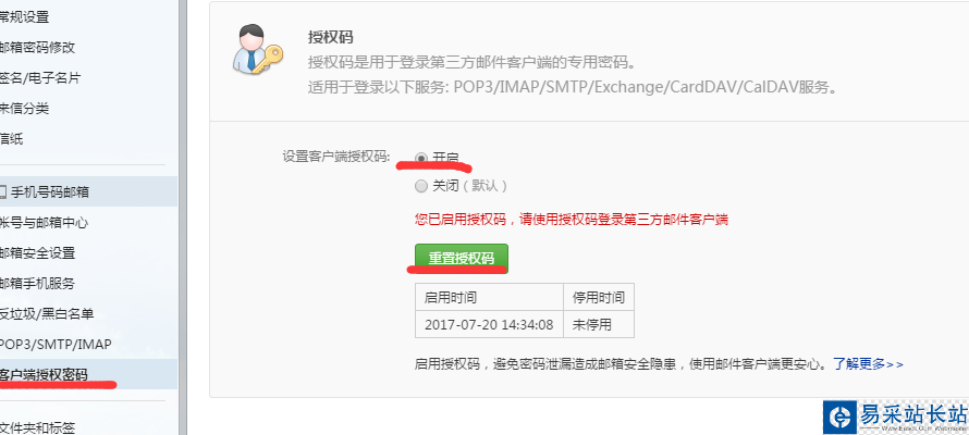 3. 點(diǎn)擊客戶端授權(quán)密碼,可以重置授權(quán)碼: