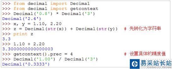 而python是以雙精度(64)位來保存浮點數,多余的位會被截掉,所以看到的是0.1,但在電腦上實際保存的已不是精確的0.1,參與運算后,也就有可能點誤差,特別是金融鄰域里面,對精度更是要求更高,如何在Python中獲取特定位數精度值?