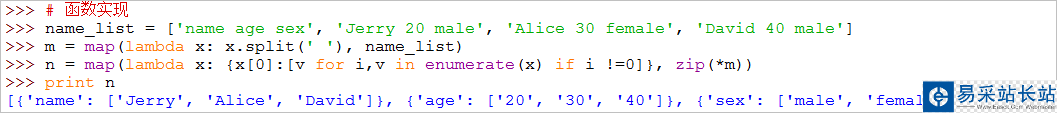 比如說將List = ['name age sex', 'Jerry 20 male', 'Alice 30 female', 'David 40 male']這種數據結構轉化成