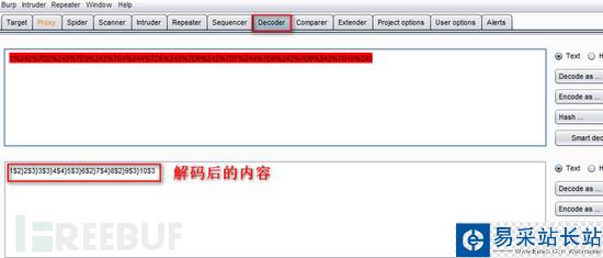 對(duì)于截獲的數(shù)據(jù)包進(jìn)行分析,有的被url編碼了不利于分析,可以使用Burpsuite編碼模塊解碼替換,這樣就好分析了