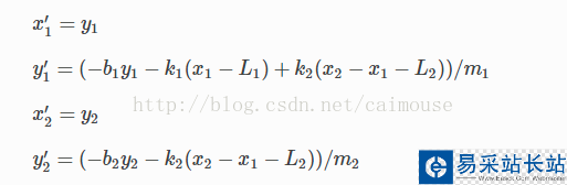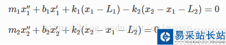 由于兩物體有重力,那么在平面上形成摩擦力,那么摩擦系數分別為b1和b2。所以可以把微分方程寫成這樣:
