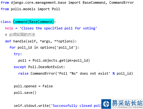新的自定義命令可以使用python manage.py closepoll 調用。
