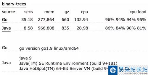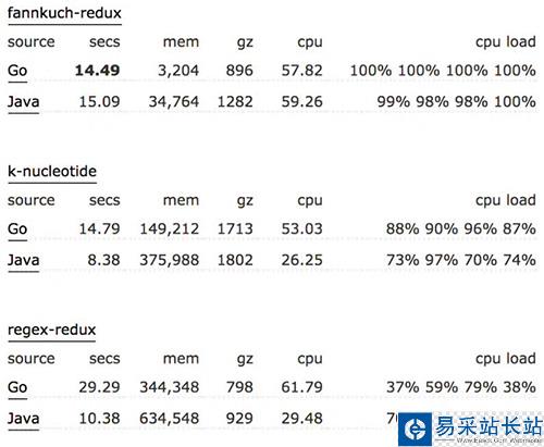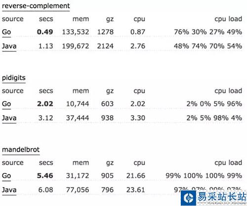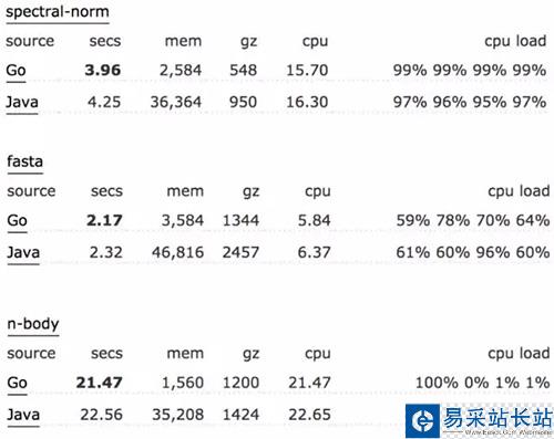 Go 極其地快。其性能與 Java 或 C++相似。在我們的使用中,Go 一般比 Python 要快 30 倍。以下是 Go 與 Java 之間的基準(zhǔn)比較:
