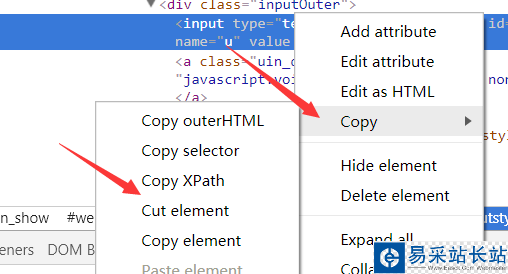 通過這些基本可以定位,有些沒有這些Attribute的,還可以通過Xpath等定位,操作如下:在之前檢查找到的代碼那里右鍵 ——>> Copy ——>> Copy Xpath(其他類似)