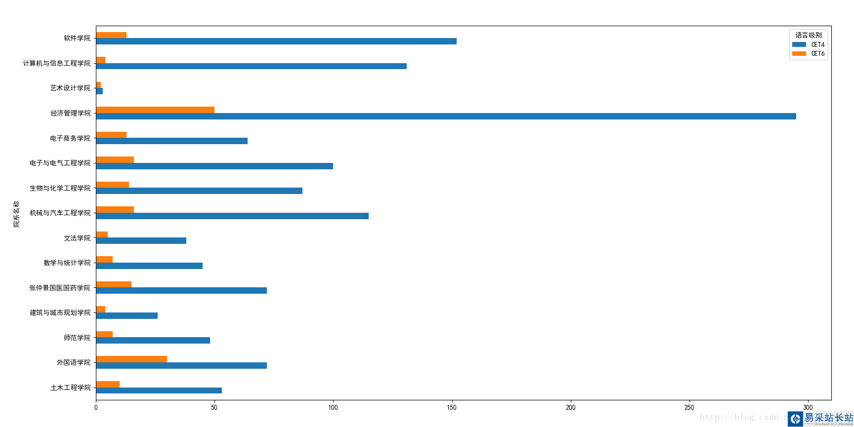 各個學院的四六級過關人數: