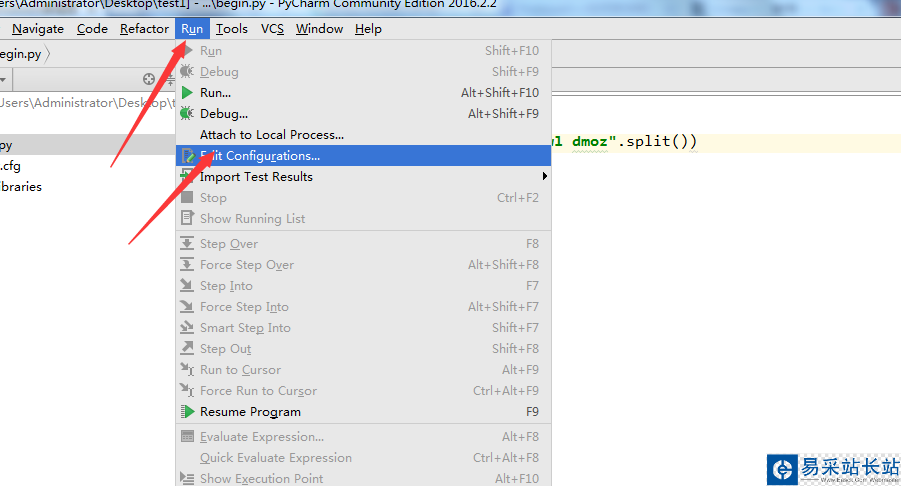 7. 上面把文件搞定了,下面要配置一下pycharm了。點擊Run->Edit Configurations