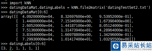 上述特征數據的格式經過file2matrix函數解析處理之后,可輸出為矩陣和類標簽向量。