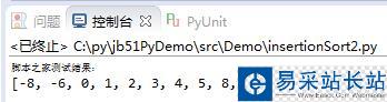 # coding:utf-8def insertionSort2(seq): length=len(seq) for i in range(1,length): for j in range(i,0,-1): if seq[j]<seq[j-1]: seq[j],seq[j-1]=seq[j-1],seq[j] else: breakif __name__=='__main__': print("武林站長站測試結果:") seq=[3,5,9,8,4,2,1,0,-6,12,-8] insertionSort2(seq) print(seq)運行結果: