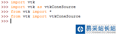 4.然后就可以在Python的IDLE界面中導入VTK的模塊和庫了,如敲入以下指令,不能出現報錯: