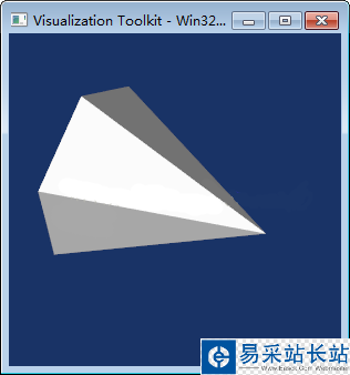 import vtk cone_a=vtk.vtkConeSource() coneMapper = vtk.vtkPolyDataMapper() coneMapper.SetInputConnection(cone_a.GetOutputPort()) coneActor = vtk.vtkActor() coneActor.SetMapper(coneMapper) ren1= vtk.vtkRenderer() ren1.AddActor( coneActor ) ren1.SetBackground( 0.1, 0.2, 0.4 ) renWin = vtk.vtkRenderWindow() renWin.AddRenderer( ren1 ) renWin.SetSize( 300, 300 ) renWin.Render() iren=vtk.vtkRenderWindowInteractor() iren.SetRenderWindow(renWin) iren.Initialize() iren.Start()