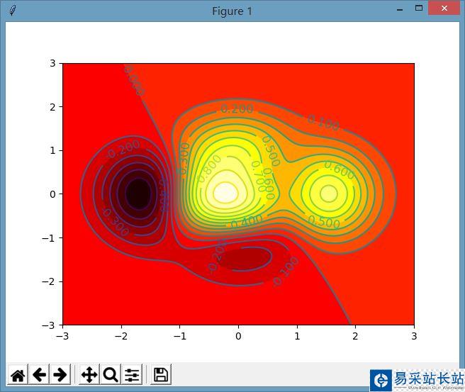 當然,如果我們不調用前面的plt.contourf()函數,則就會直接顯示等高線。