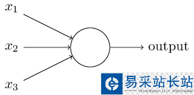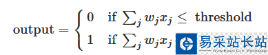 其中x1,x2,x3是二進(jìn)制的輸入值,output是二進(jìn)制的輸出值。在每個輸入端,還會有一個權(quán)重,w1,w2,w3。output取決于x1*w1+x2*w2+x3*w3,如果他小于等于一個臨界值的時候,output就輸出0,大于等于那個臨界值的時候,output就輸出1。當(dāng)然輸入值可以是任意多個,用公式表示就是: