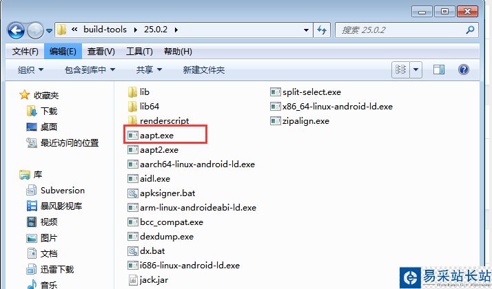 3.下載完成后,在D:/APP/android-sdk_r24.4.1-windows/android-sdk-windows/build-tools/25.0.2目錄下找到aapt.exe,并將該路徑設置環境變量,添加到path下;