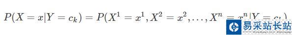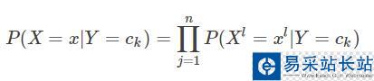 Xl表示第l個特征,由于特征條件獨立的假設,可得