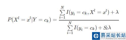 P(Y=c_k) = /frac{/sum/limits_{i=1}^NI(y_i=c_k)+/lambda}{N+K/lambda}
