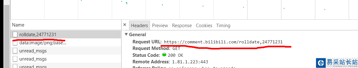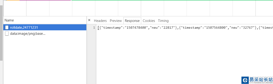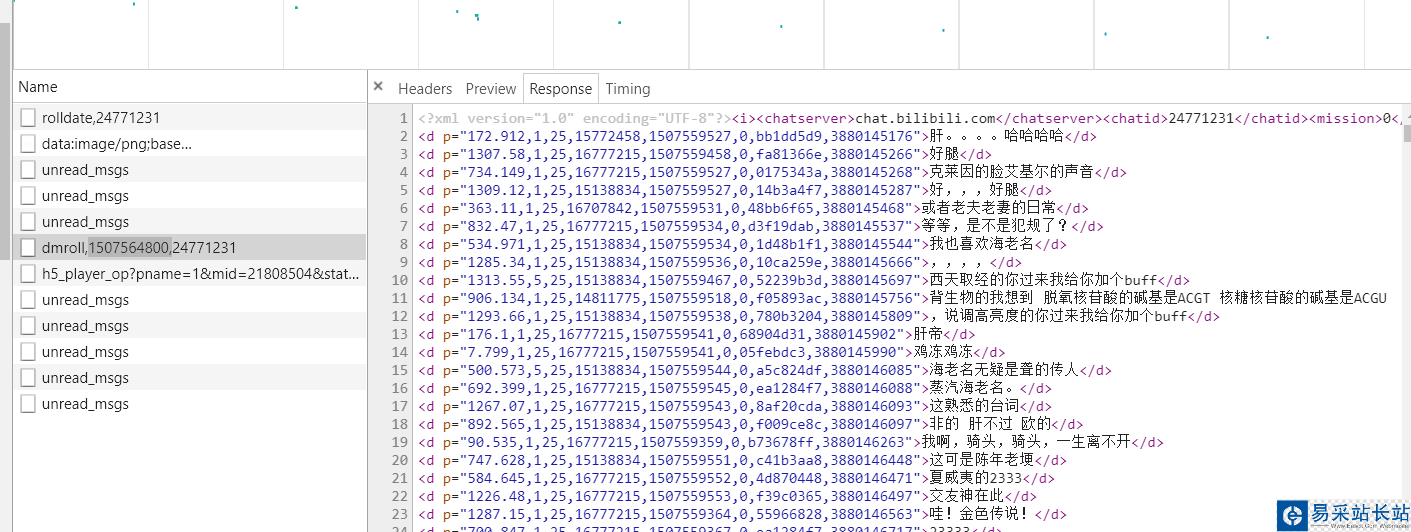 其中rolldate后面的數字表示該視頻對應的彈幕號,返回的數據中timestamp表示彈幕日期,new表示數目