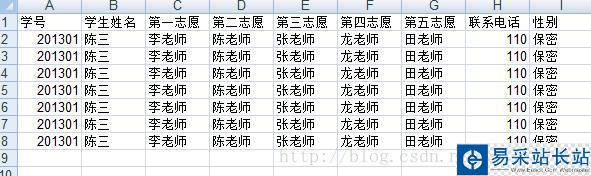 #下面這些變量需要您根據(jù)自己的具體情況選擇 biaotou=['學(xué)號(hào)','學(xué)生姓名','第一志愿','第二志愿','第三志愿','第四志愿','第五志愿','聯(lián)系電話','性別','備注'] #在哪里搜索多個(gè)表格 filelocation="C://Users//ann/Documents//Python Scripts//" #當(dāng)前文件夾下搜索的文件名后綴 fileform="xls" #將合并后的表格存放到的位置 filedestination="C://Users//ann/Documents//Python Scripts//" #合并后的表格命名為file file="test" #首先查找默認(rèn)文件夾下有多少文檔需要整合 import glob from numpy import * filearray=[] for filename in glob.glob(filelocation+"*."+fileform): filearray.append(filename) #以上是從pythonscripts文件夾下讀取所有excel表格,并將所有的名字存儲(chǔ)到列表filearray print("在默認(rèn)文件夾下有%d個(gè)文檔哦"%len(filearray)) ge=len(filearray) matrix = [None]*ge #實(shí)現(xiàn)讀寫數(shù)據(jù) #下面是將所有文件讀數(shù)據(jù)到三維列表cell[][][]中(不包含表頭) import xlrd for i in range(ge): fname=filearray[i] bk=xlrd.open_workbook(fname) try: sh=bk.sheet_by_name("Sheet1") except: print ("在文件%s中沒有找到sheet1,讀取文件數(shù)據(jù)失敗,要不你換換表格的名字?" %fname) nrows=sh.nrows matrix[i] = [0]*(nrows-1) ncols=sh.ncols for m in range(nrows-1): matrix[i][m] = ["0"]*ncols for j in range(1,nrows): for k in range(0,ncols): matrix[i][j-1][k]=sh.cell(j,k).value #下面是寫數(shù)據(jù)到新的表格test.xls中哦 import xlwt filename=xlwt.Workbook() sheet=filename.add_sheet("hel") #下面是把表頭寫上 for i in range(0,len(biaotou)): sheet.write(0,i,biaotou[i]) #求和前面的文件一共寫了多少行 zh=1 for i in range(ge): for j in range(len(matrix[i])): for k in range(len(matrix[i][j])): sheet.write(zh,k,matrix[i][j][k]) zh=zh+1 print("我已經(jīng)將%d個(gè)文件合并成1個(gè)文件,并命名為%s.xls.快打開看看正確不?"%(ge,file)) filename.save(filedestination+file+".xls")