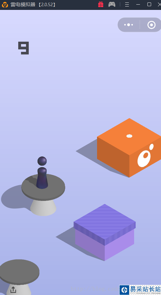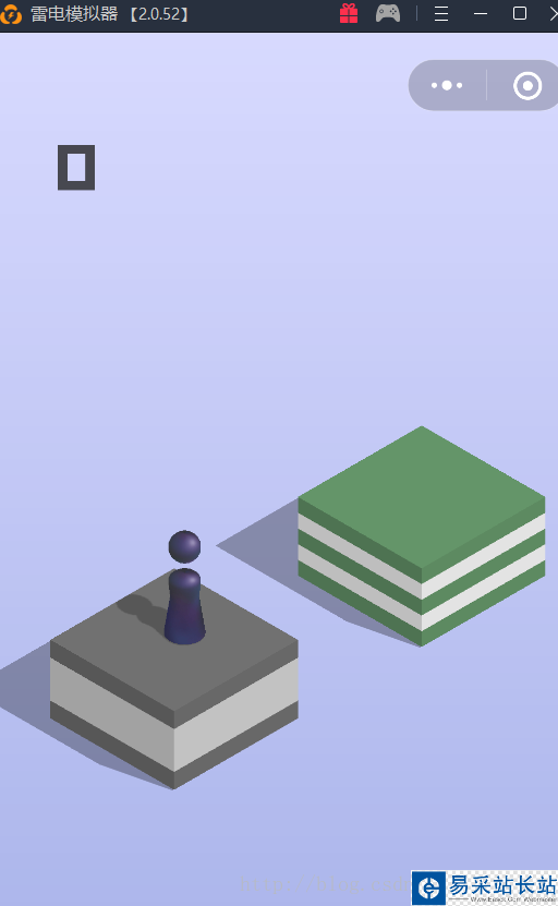 { "under_game_score_y": 300, "press_coefficient": 1.392, "piece_base_height_1_2": 24, "piece_body_width": 79, "swipe": { "x1": 500, "y1": 1600, "x2": 500, "y2": 1602 }}6. 雷電模擬器先進入跳一跳小程序,點擊開始運行,然后cmd 命令行在項目根目錄運行以下命令執行python腳本即可: