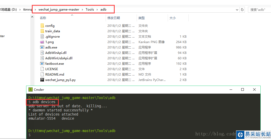4. 切換至項目的 /Tools/adb 目錄,cmd命令執行以下命令: