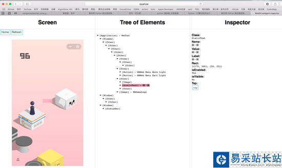 手機(jī)打開跳一跳 ,在電腦上訪問 IP , 如我的 192.168.1.101:8100/inspector ,可以看到下面的東西